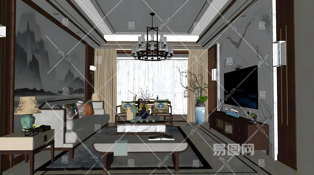当前的位置:首页 > sketchup > sketchup模型 > 家装 > 客厅 > 新中式客餐厅沙发茶几组合