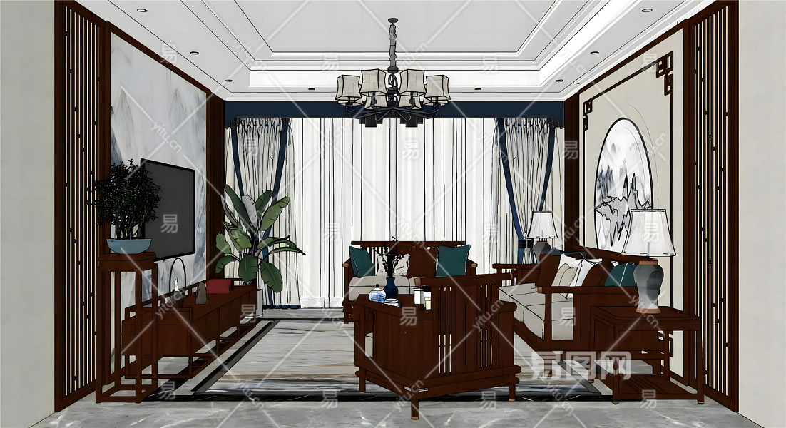当前的位置:首页 > sketchup > sketchup模型 > 家装 > 客厅 > 新中式客餐厅沙发茶几组合