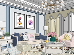 欧式客餐厅su模型,客餐厅sketchup模型下载