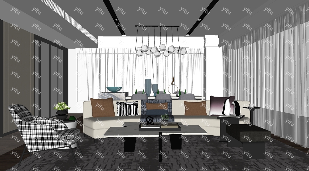 当前的位置:首页 > sketchup > sketchup模型 > 家装 > 客厅 > 新中式客厅su模型,客厅沙发桌椅茶几组合草图大师模型下载