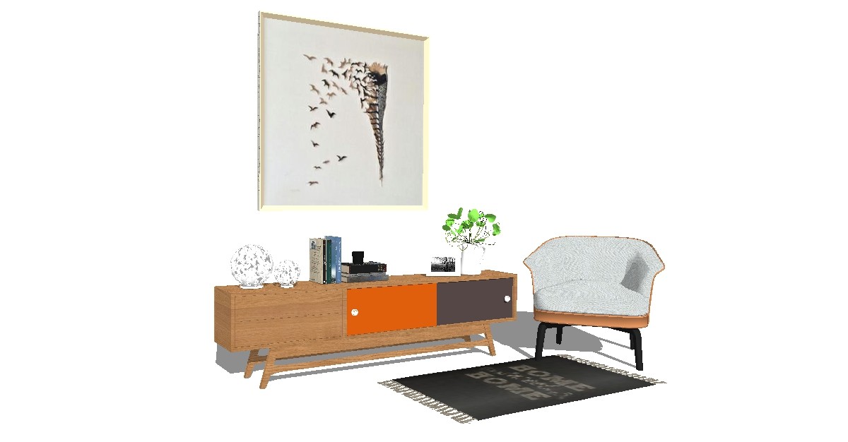 北欧客厅组合草图大师模型,客厅sketchup模型下载