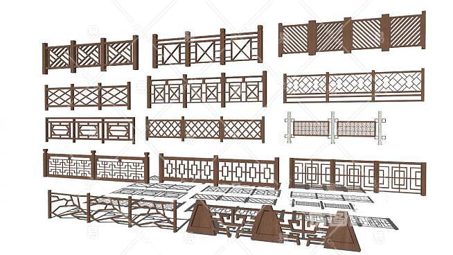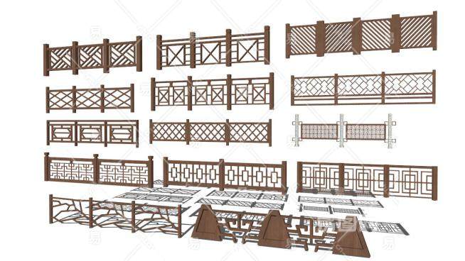 走廊木护栏su模型下载_sketchup草图大师SKP模型