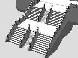 汉白玉栏杆楼梯台阶SU模型下载_sketchup草图大师SKP模型