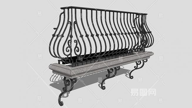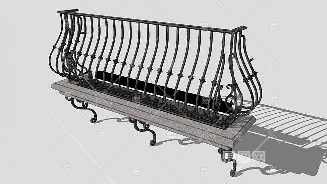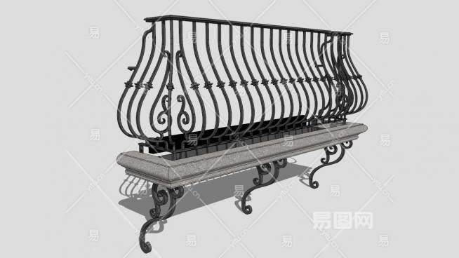 黑色铁艺围栏护栏栏杆SU模型下载_sketchup草图大师SKP模型