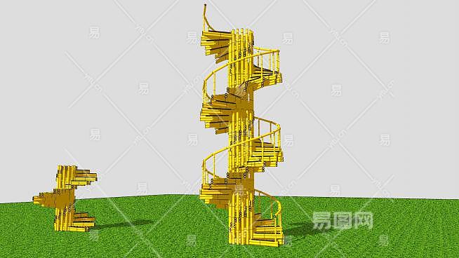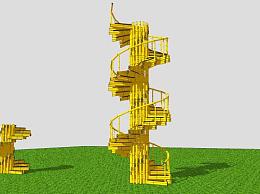 竹子搭建旋转楼梯生态楼梯SU模型下载_sketchup草图大师SKP模型