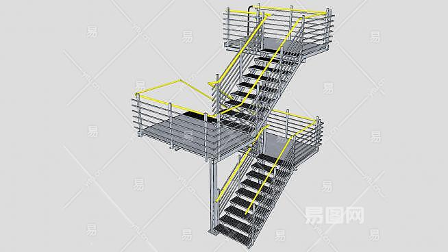 工业金属楼梯SU模型下载_sketchup草图大师SKP模型