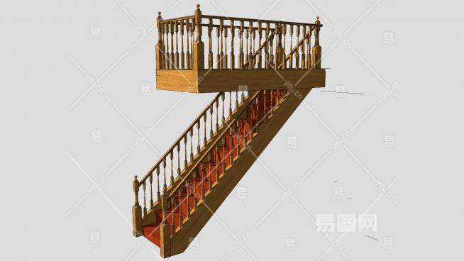 欧式木制扶手楼梯SU模型下载_sketchup草图大师SKP模型