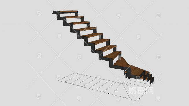 橡木钢架楼梯SU模型下载_sketchup草图大师SKP模型