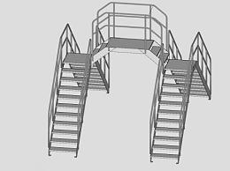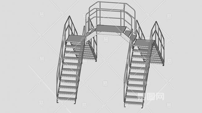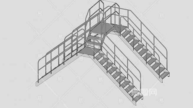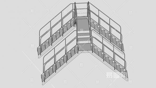 平行双向钢楼梯SU模型下载_sketchup草图大师SKP模型