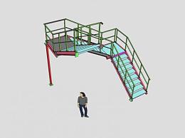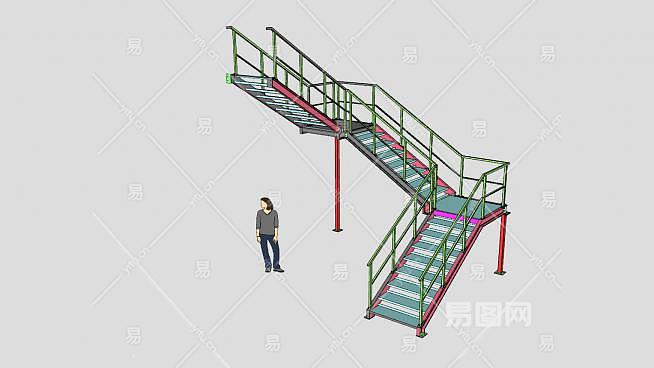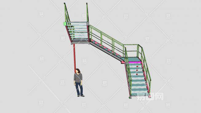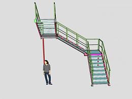 多跑钢制楼梯SU模型下载_sketchup草图大师SKP模型