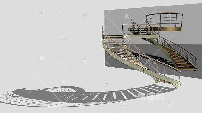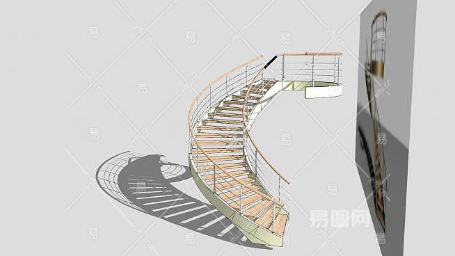 钢木旋转梯SU模型下载_sketchup草图大师SKP模型