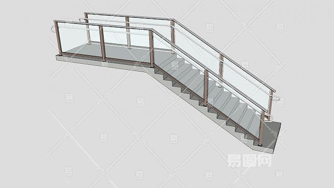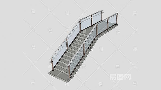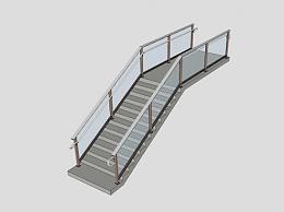 玻璃护栏楼梯SU模型下载_sketchup草图大师SKP模型