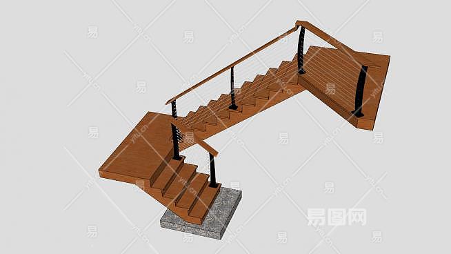 钢木室内楼梯SU模型下载_sketchup草图大师SKP模型