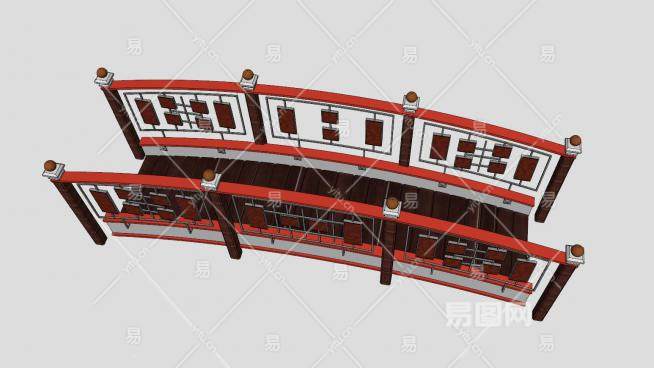 中式拱桥栏杆SU模型下载_sketchup草图大师SKP模型