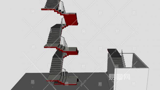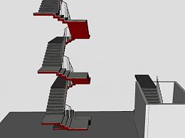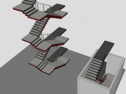 办公楼三跑楼梯SU模型下载_sketchup草图大师SKP模型