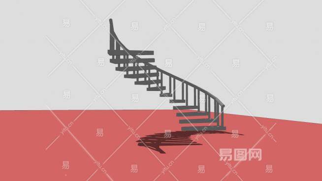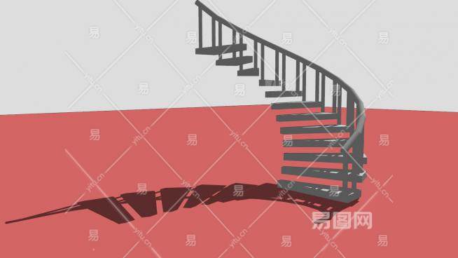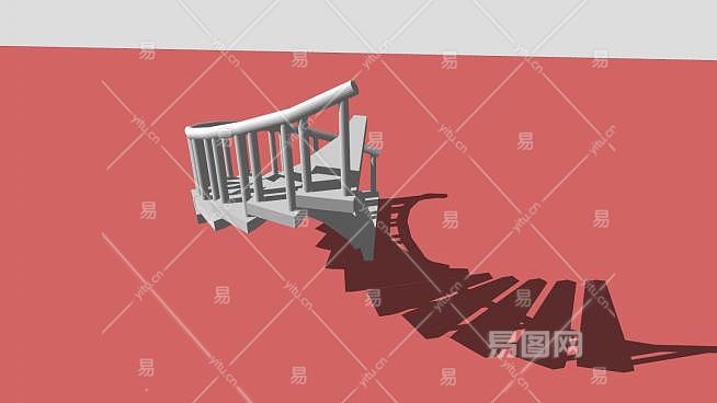 曲线型护栏楼梯SU模型下载_sketchup草图大师SKP模型