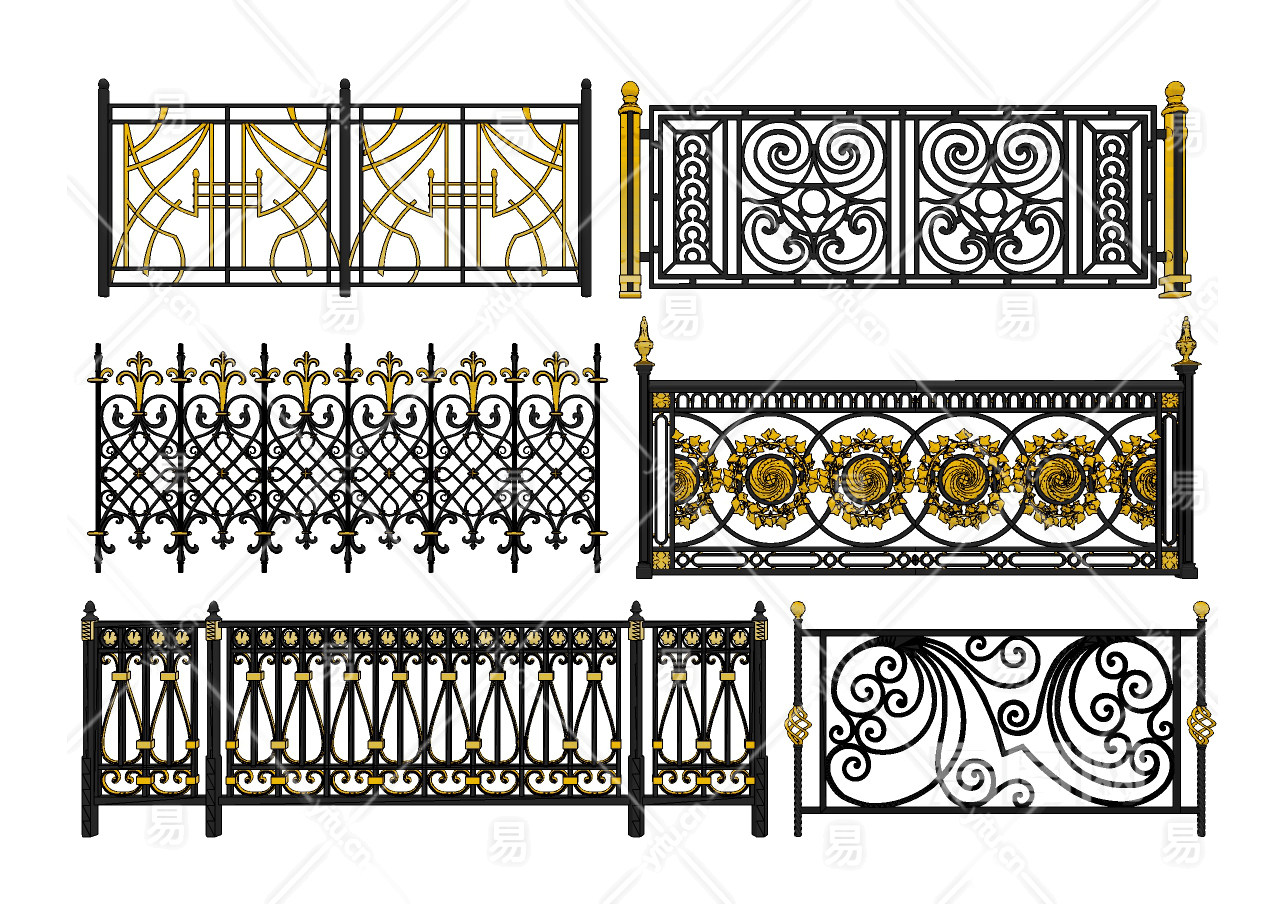 欧式铁艺雕花扶手栏杆su草图模型下载