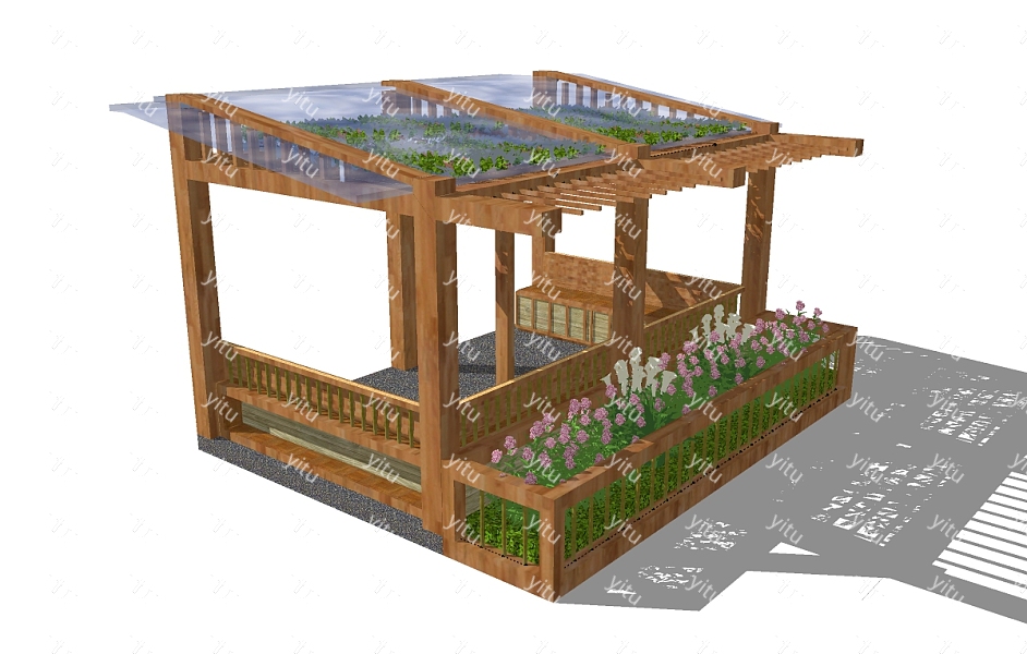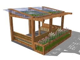 现代实木景观花架草图大师模型,实木景观花架sketchup模型下载