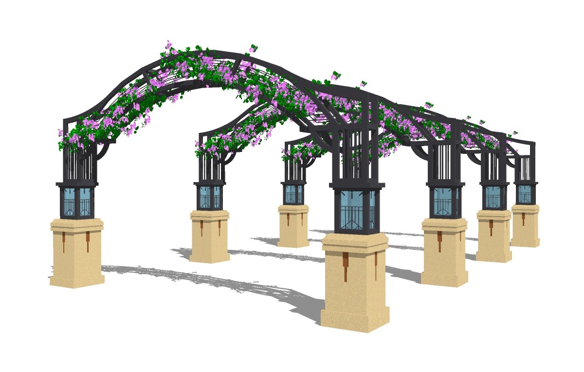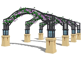 欧式铁艺廊架草图大师模型,铁艺廊架sketchup模型下载
