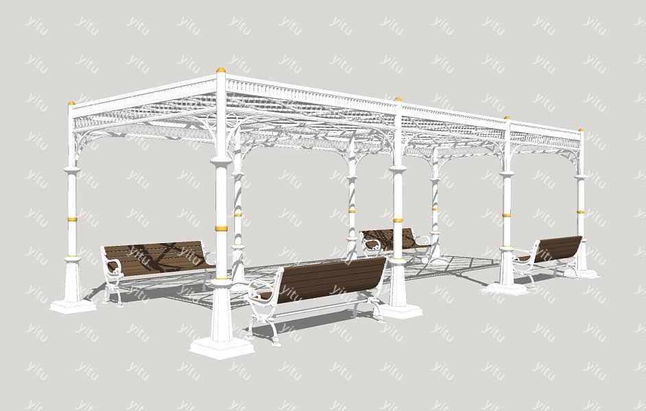 欧式造型廊架草图大师模型,造型廊架sketchup模型下载