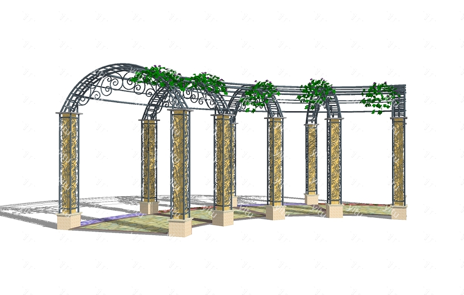 欧式铁艺廊架草图大师模型,铁艺廊架sketchup模型下载