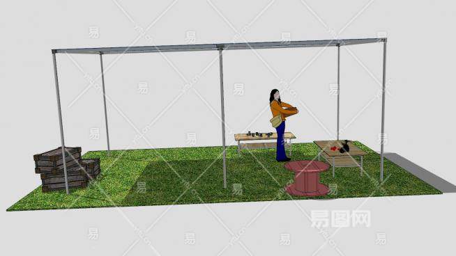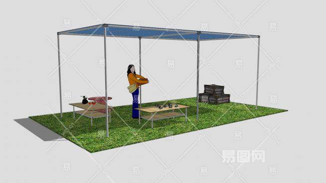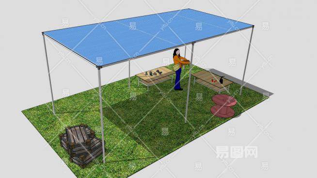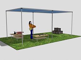 户外活动场地遮阳棚SU模型下载_sketchup草图大师SKP模型