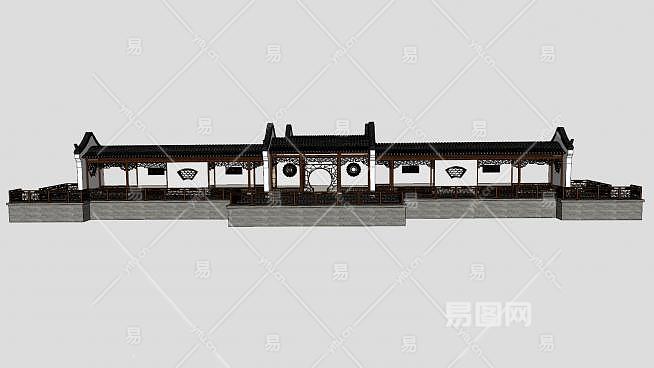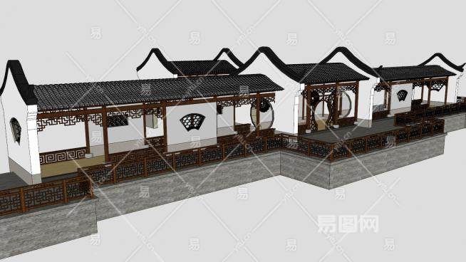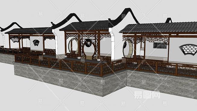 中式徽派廊架SU模型下载_sketchup草图大师SKP模型