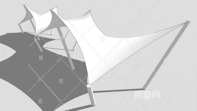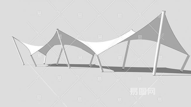 白色雨棚张拉膜车棚SU模型下载_sketchup草图大师SKP模型