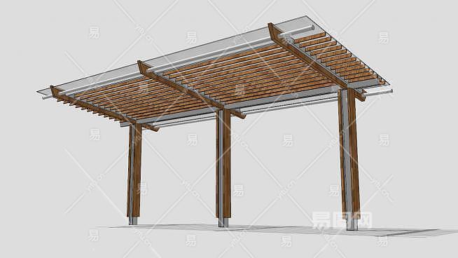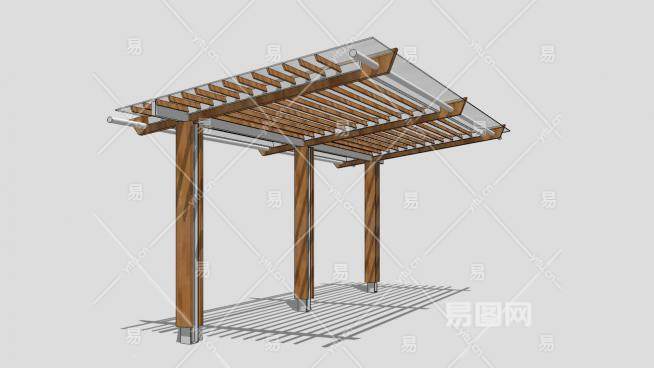 防腐木条形廊架设计SU模型下载_sketchup草图大师SKP模型