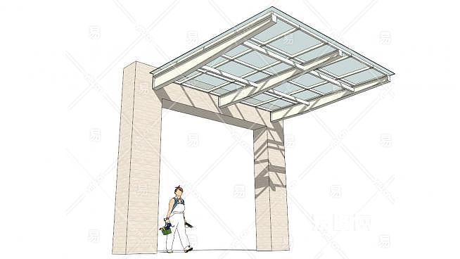 单臂玻璃雨棚su模型下载_sketchup草图大师SKP模型