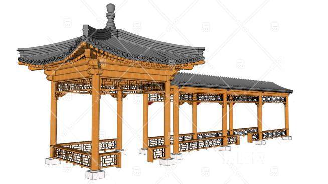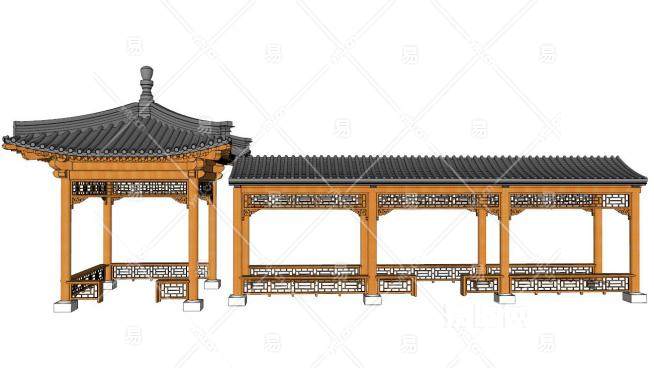 亭子长廊su模型下载_sketchup草图大师SKP模型