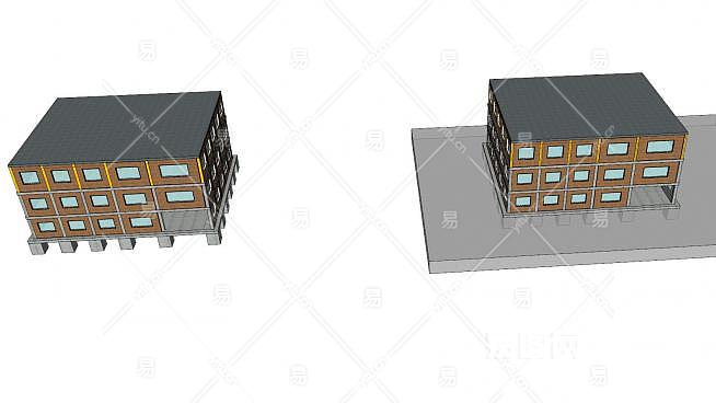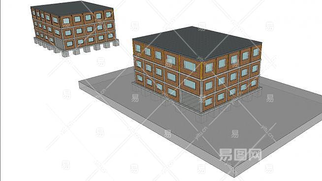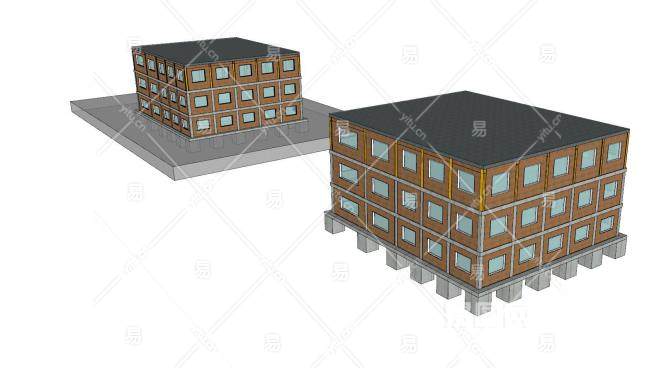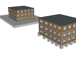 三层办公大楼地基SU模型下载_sketchup草图大师SKP模型