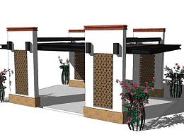 中式花园廊架SU模型下载_sketchup草图大师SKP模型