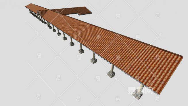 中式古建木结构廊架SU模型下载_sketchup草图大师SKP模型