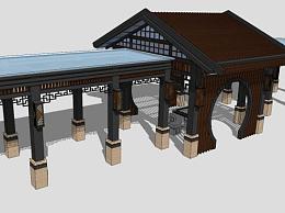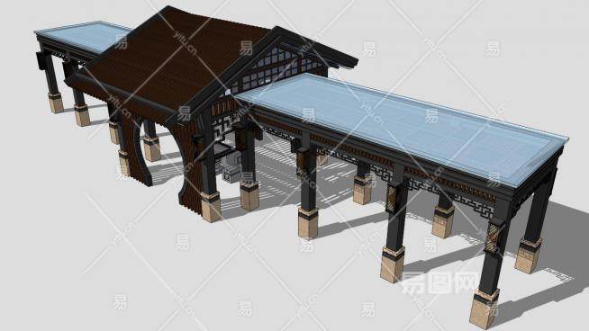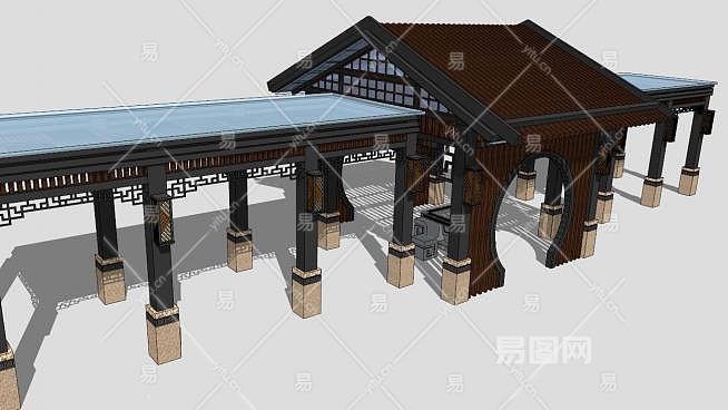 新中式廊SU模型下载_sketchup草图大师SKP模型