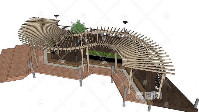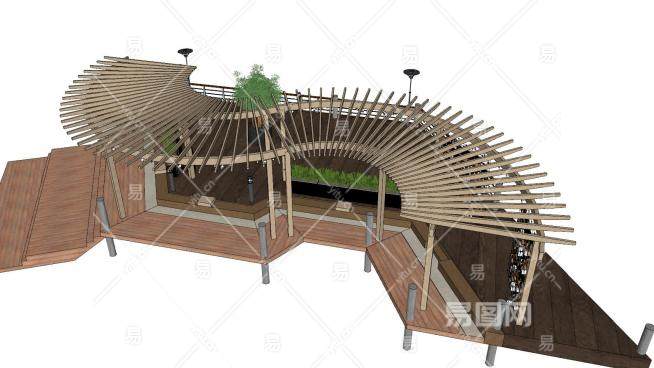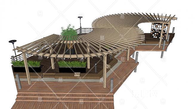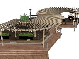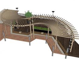 现代实木休闲长廊SU模型下载_sketchup草图大师SKP模型