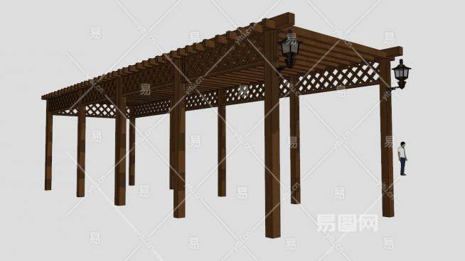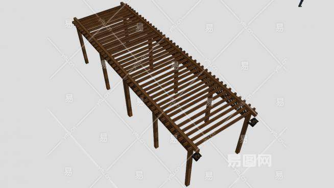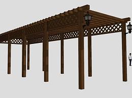 户外木质结构廊架SU模型下载_sketchup草图大师SKP模型