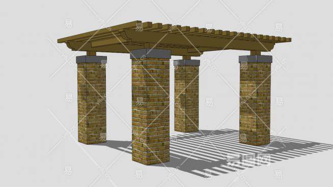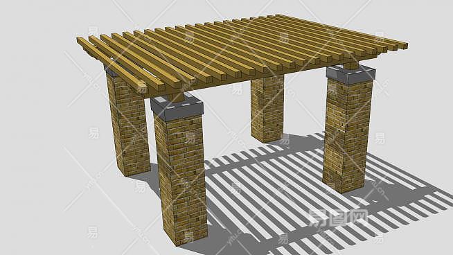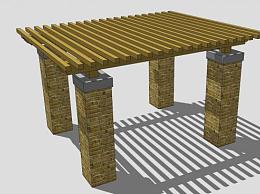 园区方形木廊架SU模型下载_sketchup草图大师SKP模型