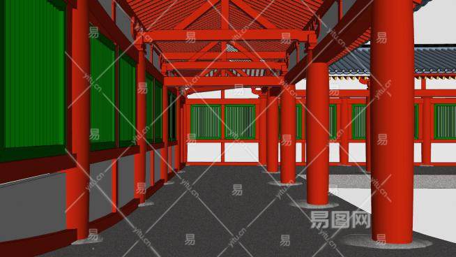 中式走道长廊SU模型下载_sketchup草图大师SKP模型