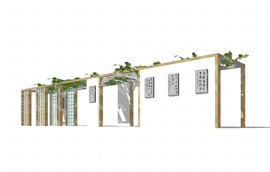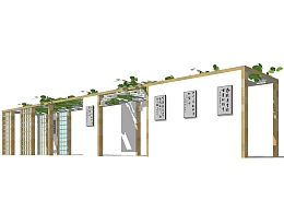 新中式廊架草图大师模型, 廊架sketchup模型下载