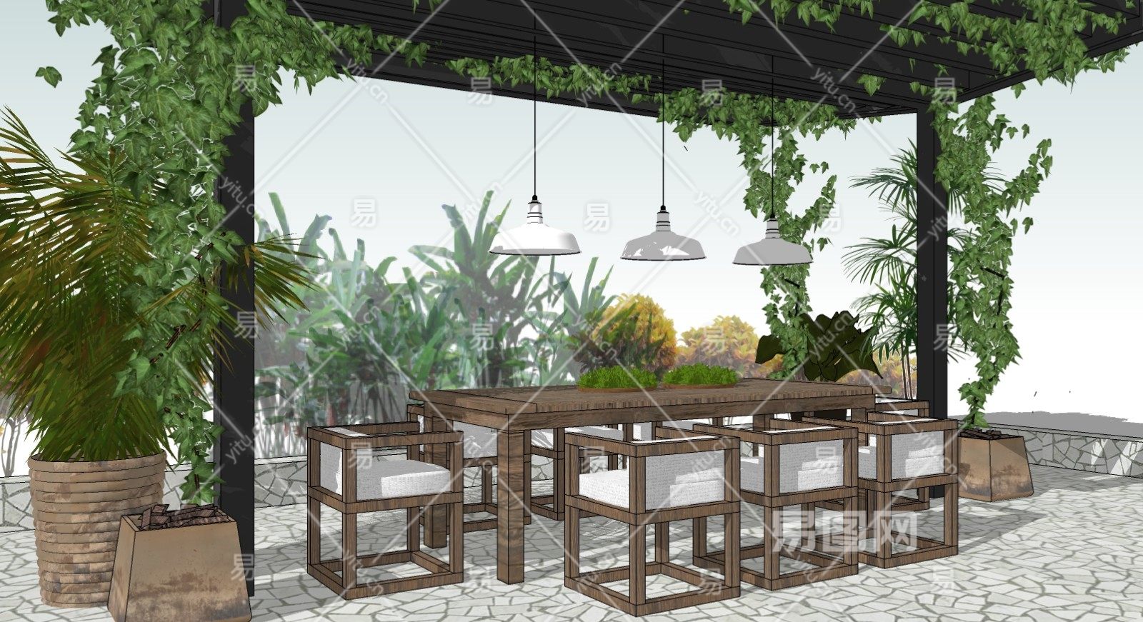 当前的位置:首页 > sketchup > sketchup模型 > 景观小品 > 廊架花架 > 户外桌椅 庭院花架 植物盆栽