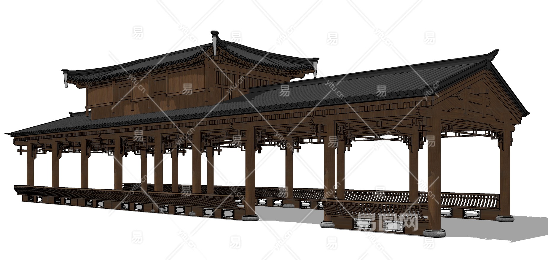 179精品中式廊桥 精致细节 中式古典建筑 寺庙 钟楼 编钟 楼梯(1)su草图模型下载