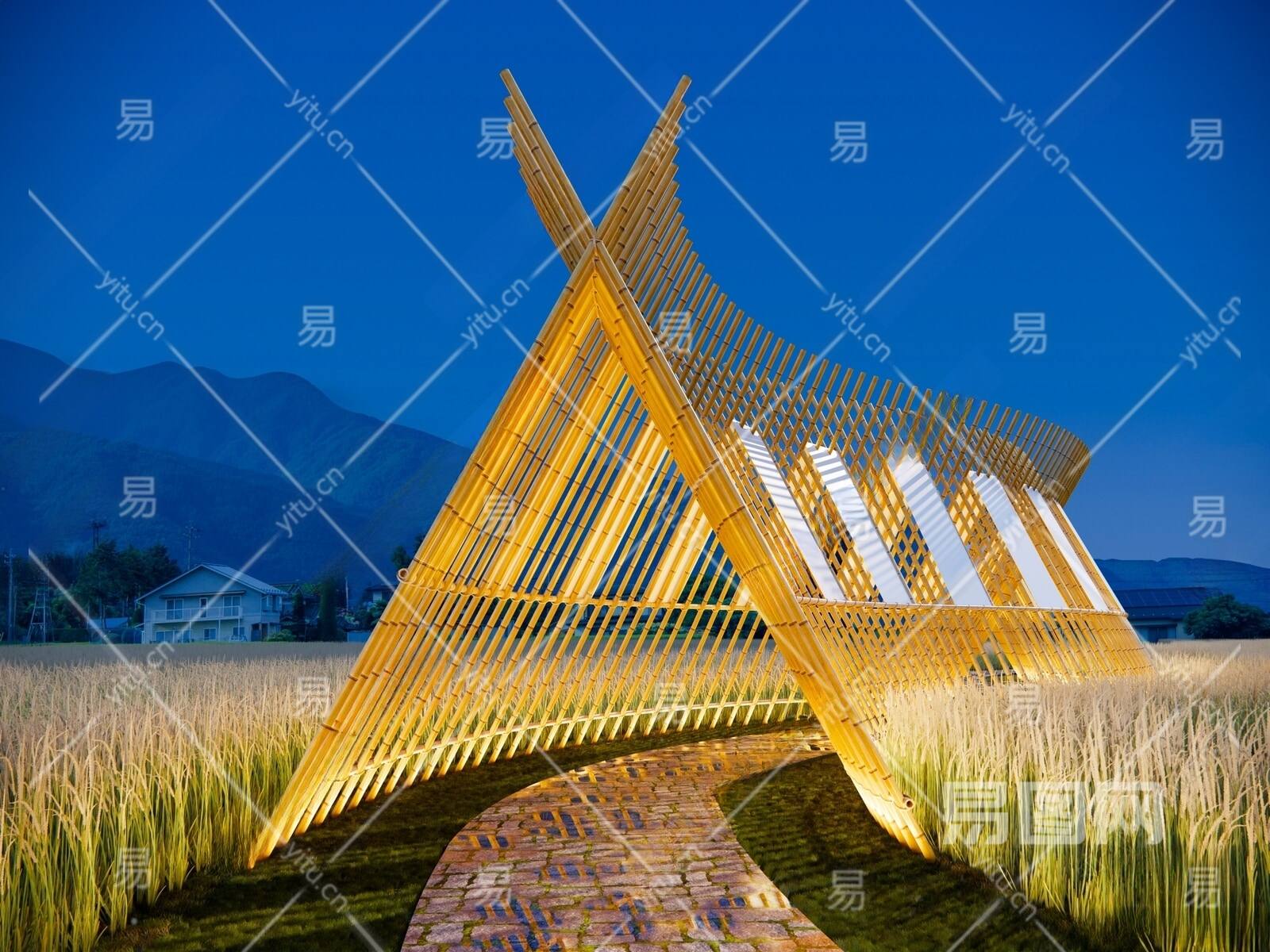 当前的位置:首页 > sketchup > sketchup模型 > 景观小品 > 廊架花架 > 现代稻田竹编景观长廊 田园旅游弧形廊架装置雕塑 网红打卡拍照艺术亭子 长条形