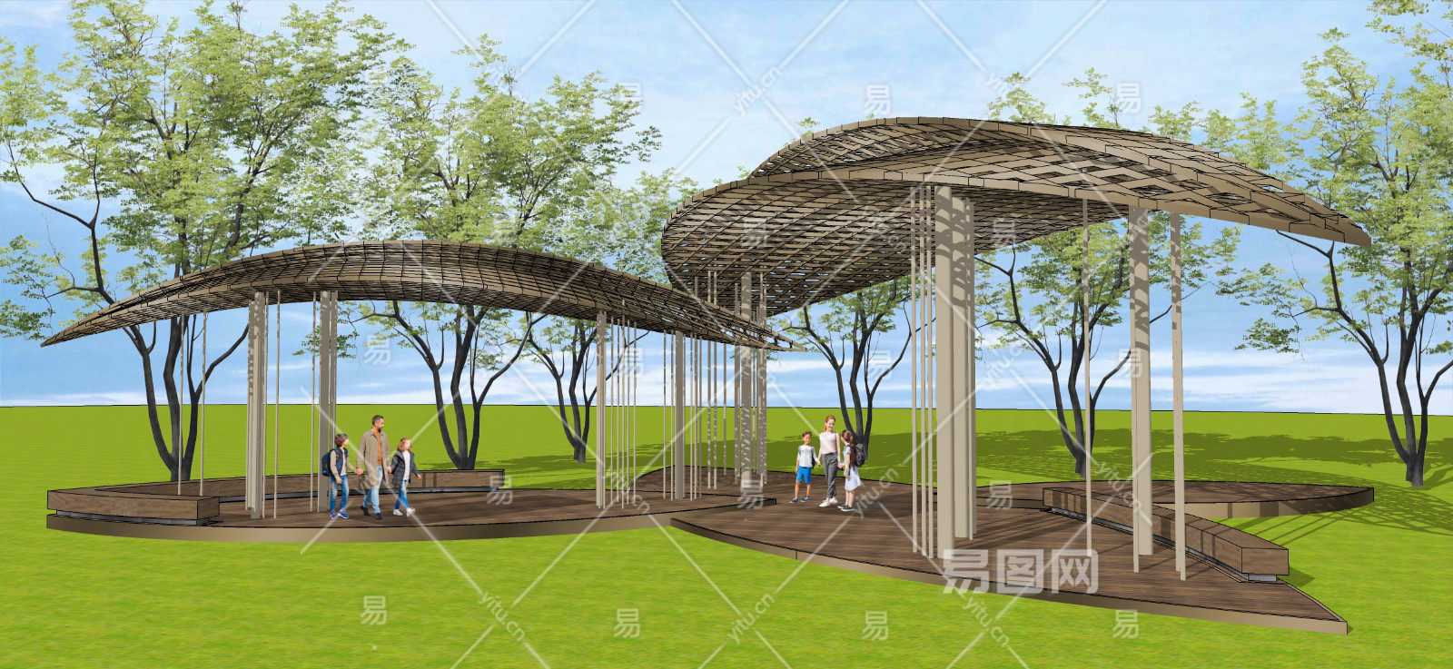 当前的位置:首页 > sketchup > sketchup模型 > 景观小品 > 廊架花架 > 现代异形树叶廊架 金属格栅亭子 子母联排凉亭