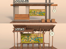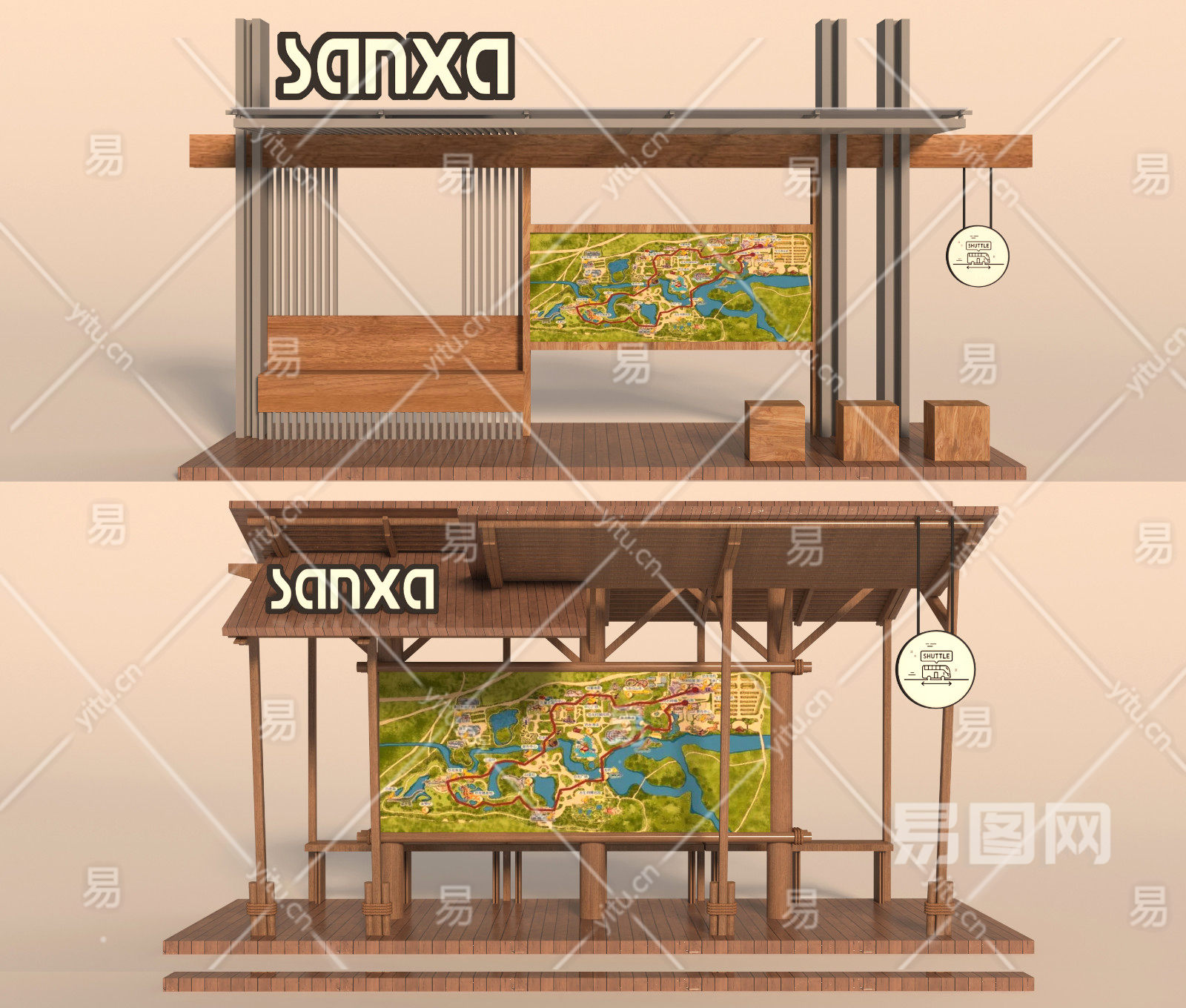 现代公交站台 旅游区指示牌导示牌 乡村振兴公交站 候车亭 木质廊架