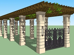 欧式廊架草图大师模型,廊架sketchup模型下载