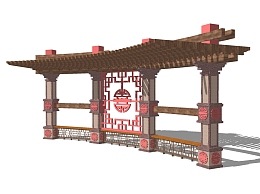 新中式造型廊架草图大师模型,造型廊架sketchup模型下载