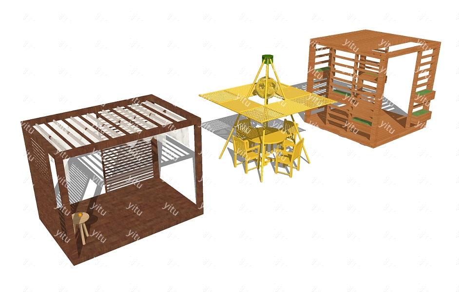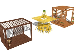 现代庭院实木花架组合草图大师模型,庭院实木花架组合sketchup模型下载