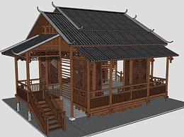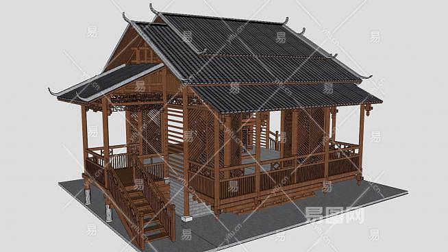 中式瓦顶木制凉亭SU模型下载_sketchup草图大师SKP模型