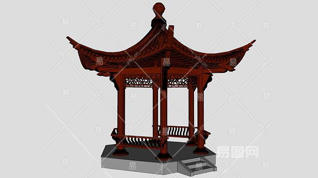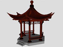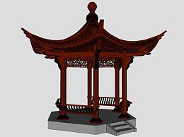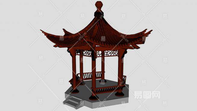 中式攒尖顶六角亭SU模型下载_sketchup草图大师SKP模型
